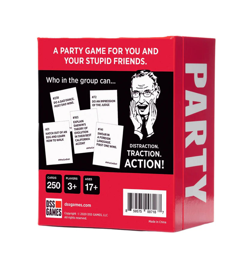 250 cards to challenge your friends to see WHO CAN DO IT... Compete against your friends to see who can swear in a foreign language, take the worst selfie, or pretend to ride a mechanical bull. Do the challenge first or best to win.