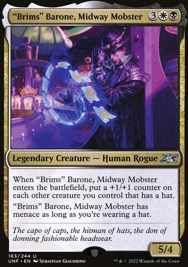 "Brims" Barone, Midway Mobster [Unfinity]Set: Unfinity Type: Legendary Creature — Human Rogue Rarity: Uncommon Cost: ...