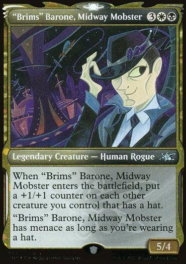 "Brims" Barone, Midway Mobster (Showcase) (Galaxy Foil) [Unfinity]Set: Unfinity Type: Legendary Creature — Human Rogue Rarity: Uncommon Cost: ...