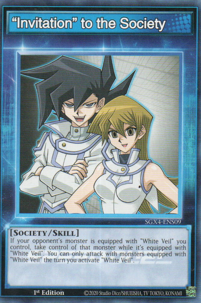 "Invitation" to the Society [SGX4-ENS09] CommonSet: Speed Duel GX: Midterm Destruction Card type: Skill Card Rarity: Common ...