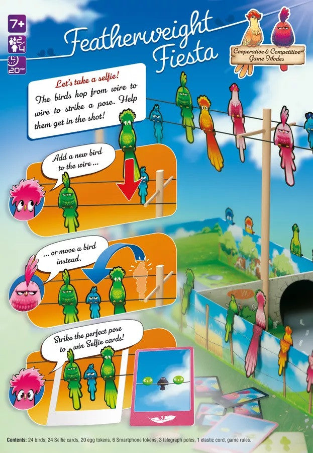 Object of the Game : Win the most points by recreating the bird’s poses from the Selfie cards on the wire