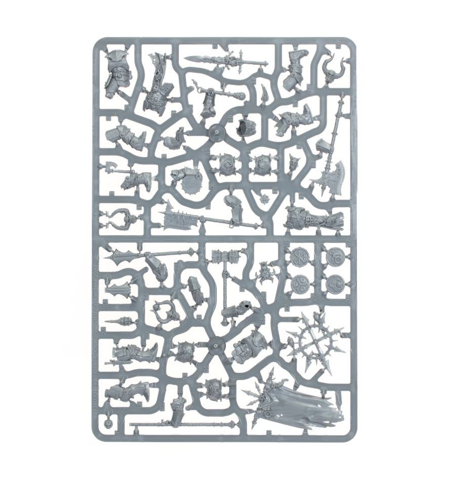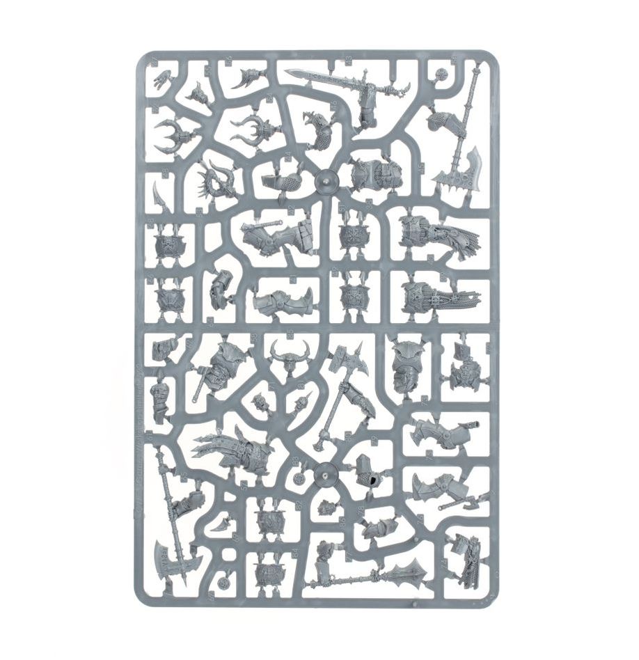 This multipart plastic kit builds five Chaos Chosen – hardened warriors for Slaves to Darkness armies in Warhammer Age of Sigmar. Each of these deadly fighters is armed with a soul splitter – accursed two-handed weapons in the form of hammers, axes, mauls, and greatswords – and clad in ornate plate armour. One model can be built as an Exalted Champion, one as a Skull Drummer musician, and another as an Icon Bearer with either a flag or eight-pointed star – the kit includes five alternate sigils to dedicate your icon to Khorne, Slaanesh, Nurgle, Tzeentch, or Chaos Undivided. The other two models can be built with a choice of weapons, and the kit includes eight helmeted and four bare heads to choose from, allowing you to easily personalise your Chaos Chosen.