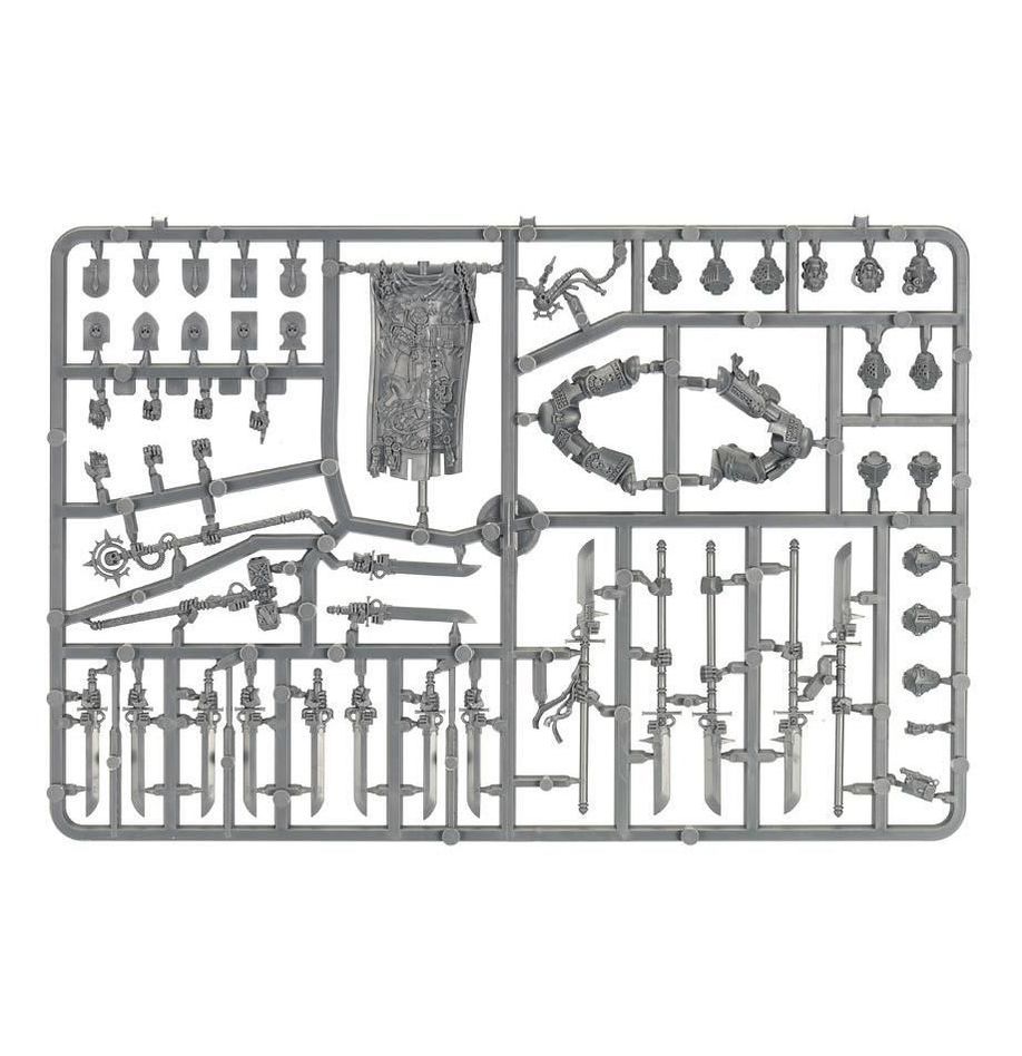 This multi-part plastic boxed set contains 153 components and five 40mm round bases with which to make either a Grey Knight Terminator Squad or a Grey Knight Paladin Squad. There is an array of weaponry and unit upgrades including Nemesis falchions, Nemesis force halberds, a Nemesis Daemon hammer, a Nemesis warding stave, a psycannon, a psilencer and an incinerator. This kit is unpainted and requires assembly