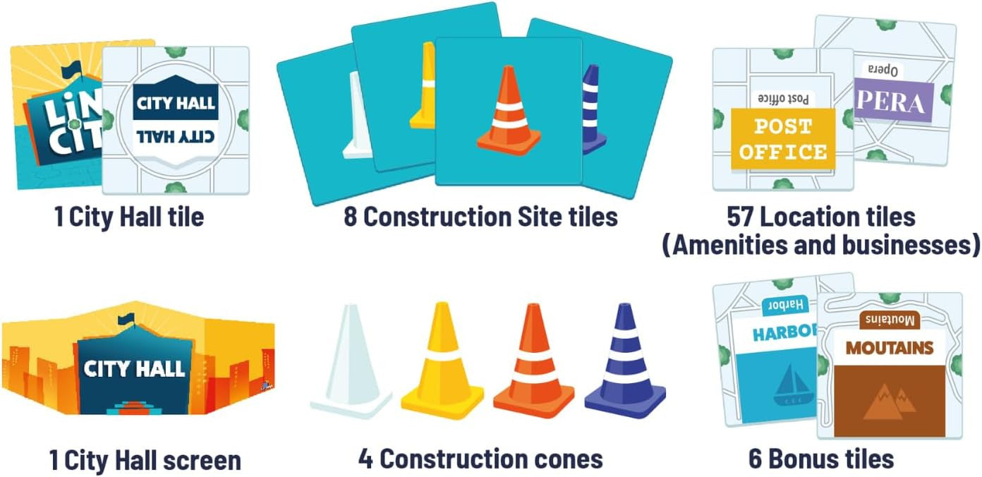 As city expansion is approved and starter tiles are laid, the mayor secretly decides where to build new amenities or businesses. Will all other players be able to collectively guess what the mayor has in mind, linking tiles to create tree-lined streets?
