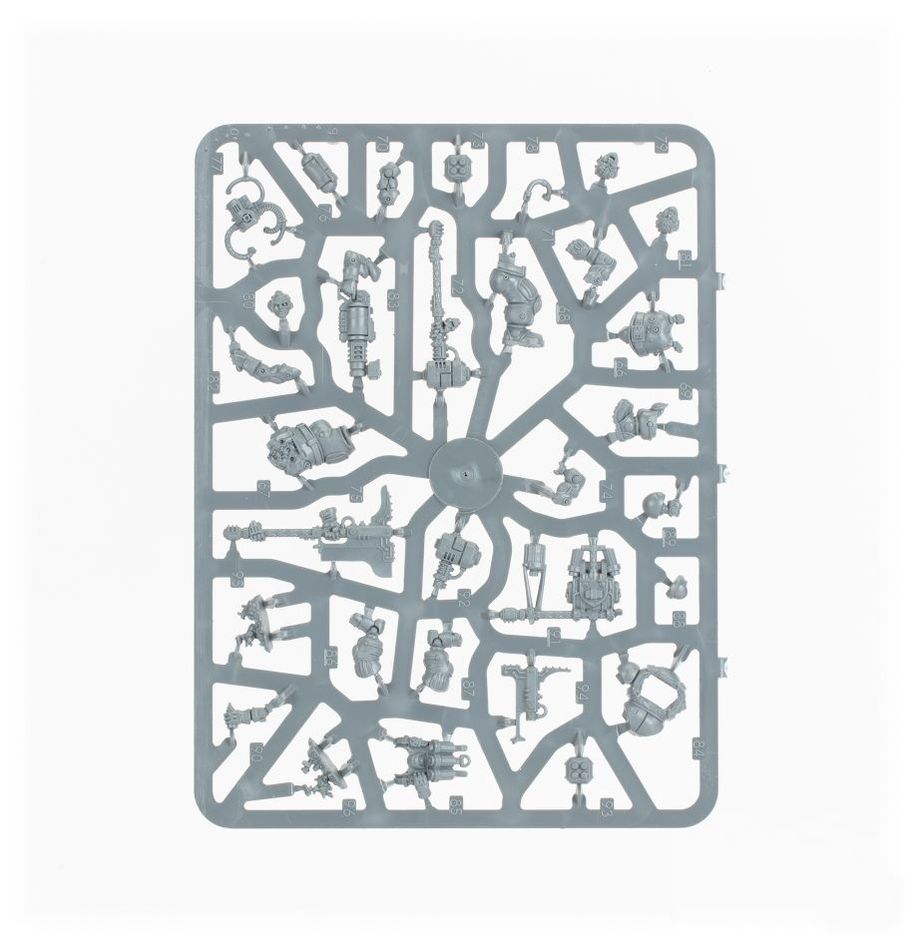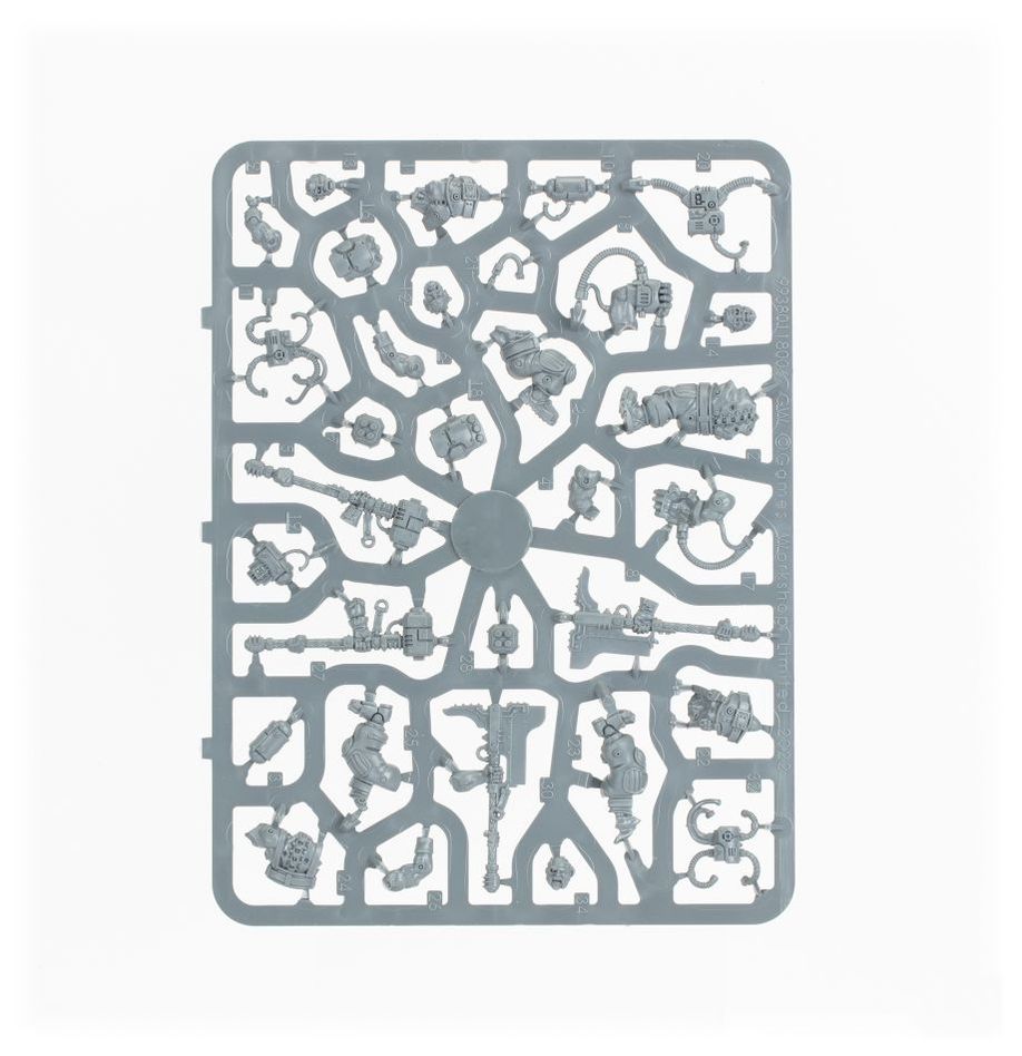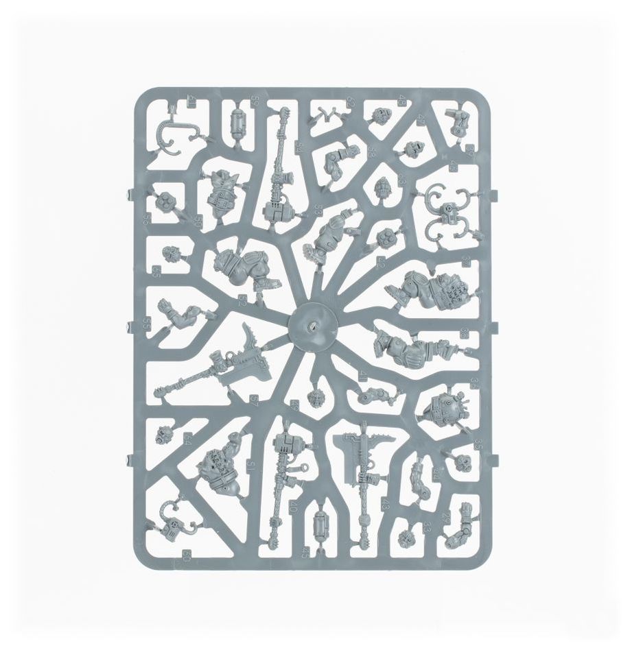 This set comprises 117 plastic components, and is supplied with a Citadel 50mm Round Base, 5x Citadel 28.5mm Round Bases, 3x Citadel 25mm Round Bases, and a Leagues of Votann Transfer Sheet with 555 numerals, runes, and markings for prominent Leagues. These miniatures are supplied unpainted and require assembly