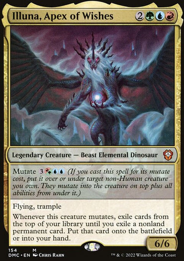 Illuna, Apex of Wishes [Dominaria United Commander]Set: Dominaria United Commander Type: Legendary Creature — Beast Elemental Dinosaur Rarity: Mythic ...