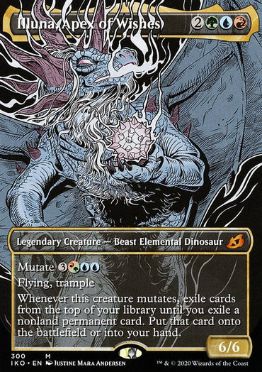 Illuna, Apex of Wishes (Showcase) [Ikoria: Lair of Behemoths]Set: Ikoria: Lair of Behemoths Type: Legendary Creature — Beast Elemental Dinosaur Rarity: Mythic ...