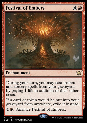 Festival of Embers [Bloomburrow Prerelease Promos]Set: Bloomburrow Prerelease Promos Type: Enchantment Rarity: Rare Cost: ...