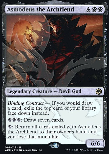 Asmodeus the Archfiend [Dungeons & Dragons: Adventures in the Forgotten Realms]Set: Dungeons & Dragons: Adventures in the Forgotten Realms Type: Legendary Creature — Devil God Rarity: ...