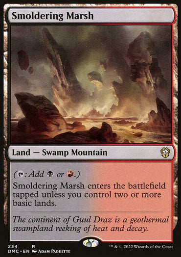 Smoldering Marsh [Dominaria United Commander]Set: Dominaria United Commander Type: Land — Swamp Mountain Rarity: Rare ...