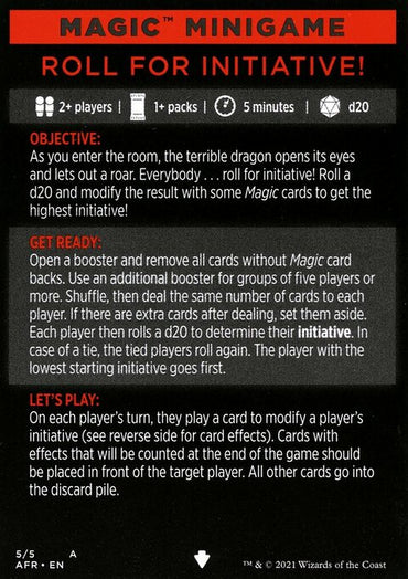 Roll for Initiative (Magic Minigame) [Dungeons & Dragons: Adventures in the Forgotten Realms Minigame]Set: Dungeons & Dragons: Adventures in the Forgotten Realms Minigame Type: Card — Magic Minigame Rarity: ...