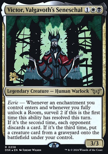 Victor, Valgavoth's Seneschal [Duskmourn: House of Horror Prerelease Promos]Set: Duskmourn: House of Horror Prerelease Promos Type: Legendary Creature — Human Warlock Rarity: R...