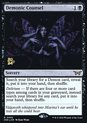 Demonic Counsel [Duskmourn: House of Horror Prerelease Promos]Set: Duskmourn: House of Horror Prerelease Promos Type: Sorcery Rarity: Rare ...