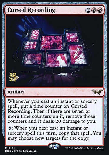 Cursed Recording (0131) [Duskmourn: House of Horror Prerelease Promos]Set: Duskmourn: House of Horror Prerelease Promos Type: Artifact Rarity: Rare ...