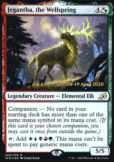 Jegantha, the Wellspring (Promo Pack) [Ikoria: Lair of Behemoths Promos]Set: Ikoria: Lair of Behemoths Promos Type: Legendary Creature — Elemental Elk Rarity: Rare ...