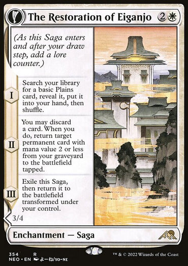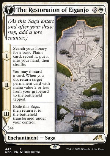 The Restoration of Eiganjo // Architect of Restoration [Kamigawa: Neon Dynasty]Set: Kamigawa: Neon Dynasty Type: Enchantment — Saga Rarity: Rare Cost: ...