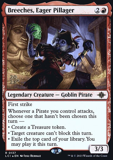 Breeches, Eager Pillager [The Lost Caverns of Ixalan Prerelease Cards]Set: The Lost Caverns of Ixalan Prerelease Cards Type: Legendary Creature — Goblin Pirate Rarity: Ra...