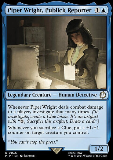 Piper Wright, Publick Reporter [Fallout]Set: Fallout Type: Legendary Creature — Human Detective Rarity: Rare Cost: ...