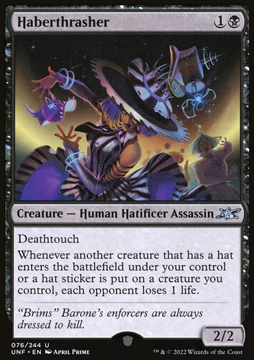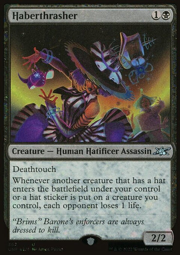Haberthrasher [Unfinity]Set: Unfinity Type: Creature — Human Hatificer Assassin Rarity: Uncommon Cos...