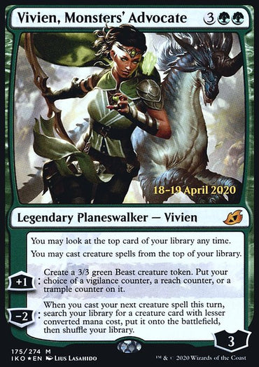 Vivien, Monsters' Advocate [Ikoria: Lair of Behemoths Prerelease Promos]Set: Ikoria: Lair of Behemoths Prerelease Promos Type: Legendary Planeswalker — Vivien Rarity: Mythi...