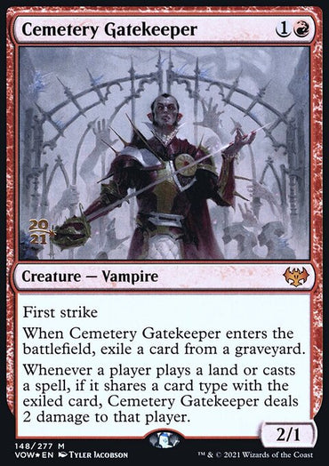 Cemetery Gatekeeper [Innistrad: Crimson Vow Prerelease Promos]Set: Innistrad: Crimson Vow Prerelease Promos Type: Creature — Vampire Rarity: Mythic ...