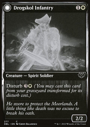 Drogskol Infantry // Drogskol Armaments [Innistrad: Double Feature]Set: Innistrad: Double Feature Type: Creature — Spirit Soldier Rarity: Common ...