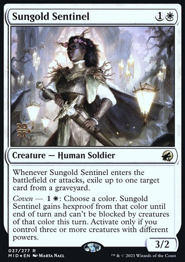 Sungold Sentinel [Innistrad: Midnight Hunt Prerelease Promos]Set: Innistrad: Midnight Hunt Prerelease Promos Type: Creature — Human Soldier Rarity: Rare ...
