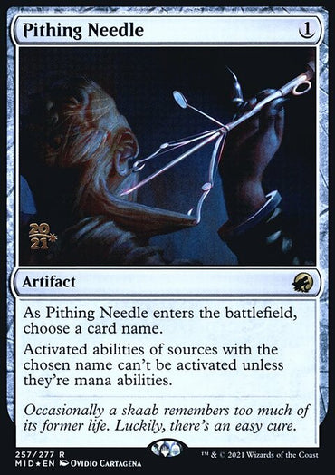 Pithing Needle [Innistrad: Midnight Hunt Prerelease Promos]Set: Innistrad: Midnight Hunt Prerelease Promos Type: Artifact Rarity: Rare ...