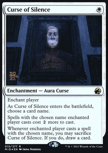 Curse of Silence [Innistrad: Midnight Hunt Prerelease Promos]Set: Innistrad: Midnight Hunt Prerelease Promos Type: Enchantment — Aura Curse Rarity: Rare ...