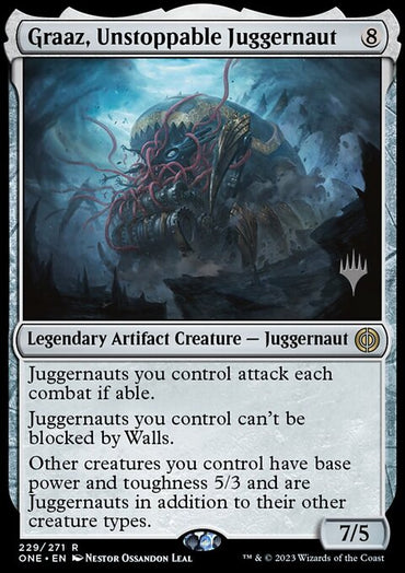 Graaz, Unstoppable Juggernaut [Phyrexia: All Will Be One]Set: Phyrexia: All Will Be One Type: Legendary Artifact Creature — Juggernaut Rarity: Rare ...