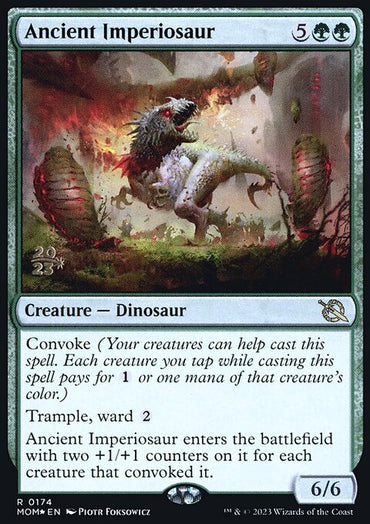 Ancient Imperiosaur [March of the Machine Prerelease Promos]Set: March of the Machine Prerelease Promos Type: Creature — Dinosaur Rarity: Rare ...