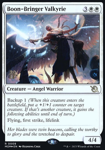 Boon-Bringer Valkyrie [March of the Machine Prerelease Promos]Set: March of the Machine Prerelease Promos Type: Creature — Angel Warrior Rarity: Rare ...