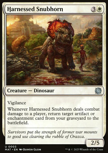 Harnessed Snubhorn [March of the Machine: The Aftermath]Set: March of the Machine: The Aftermath Type: Creature — Dinosaur Rarity: Uncommon ...