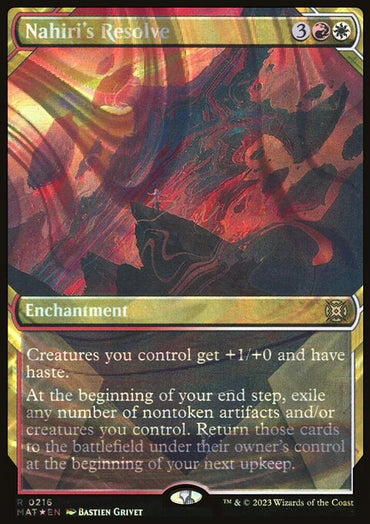 Nahiri's Resolve (Showcase Halo Foil) [March of the Machine: The Aftermath]Set: March of the Machine: The Aftermath Type: Enchantment Rarity: Rare Cost...