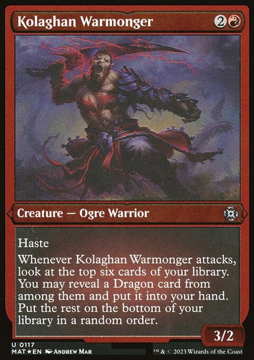 Kolaghan Warmonger (Foil Etched) [March of the Machine: The Aftermath]Set: March of the Machine: The Aftermath Type: Creature — Ogre Warrior Rarity: Uncommon ...