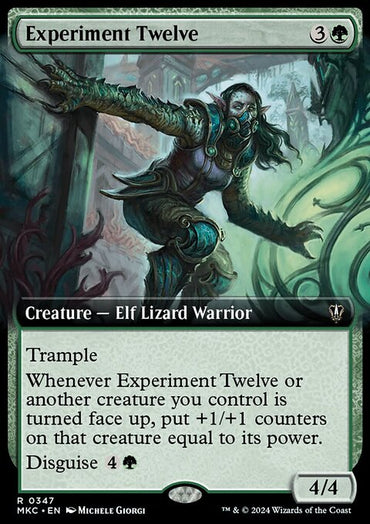 Experiment Twelve (Extended Art) [Murders at Karlov Manor Commander]Set: Murders at Karlov Manor Commander Type: Creature — Elf Lizard Warrior Rarity: Rare ...