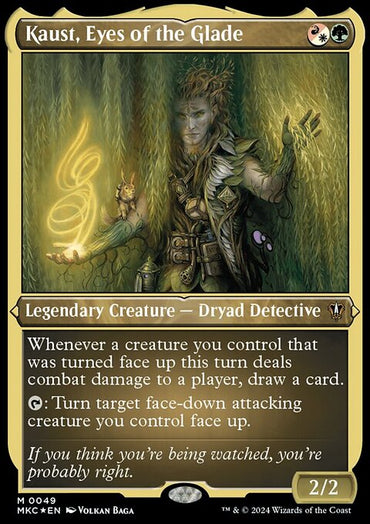 Kaust, Eyes of the Glade (Display Commander) [Murders at Karlov Manor Commander]Set: Murders at Karlov Manor Commander Type: Legendary Creature — Dryad Detective Rarity: Mythic ...