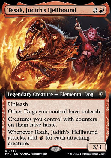 Tesak, Judith's Hellhound (Extended Art) [Murders at Karlov Manor Commander]Set: Murders at Karlov Manor Commander Type: Legendary Creature — Elemental Dog Rarity: Rare ...