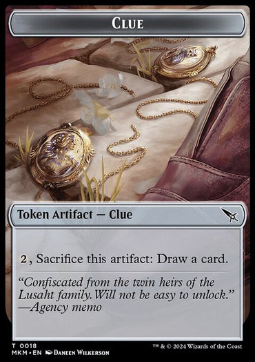 Clue (0018) // A 0045 Double-Sided Token [Murders at Karlov Manor Tokens]Set: Murders at Karlov Manor Tokens Type: Token Artifact — Clue Rarity: Common ...