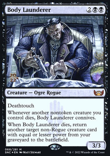 Body Launderer [Streets of New Capenna]Set: Streets of New Capenna Type: Creature — Ogre Rogue Rarity: Mythic Cost:...