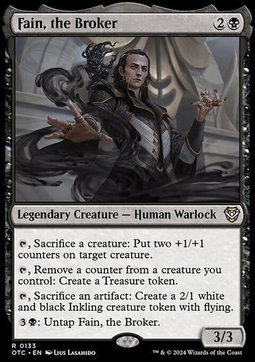 Fain, the Broker [Outlaws of Thunder Junction Commander]Set: Outlaws of Thunder Junction Commander Type: Legendary Creature — Human Warlock Rarity: Rare ...