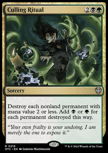 Culling Ritual [Outlaws of Thunder Junction Commander]Set: Outlaws of Thunder Junction Commander Type: Sorcery Rarity: Rare Cost: ...