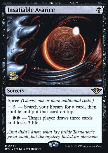 Insatiable Avarice [Outlaws of Thunder Junction Prerelease Promos]Set: Outlaws of Thunder Junction Prerelease Promos Type: Sorcery Rarity: Rare ...