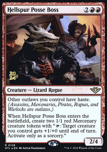 Hellspur Posse Boss [Outlaws of Thunder Junction Prerelease Promos]Set: Outlaws of Thunder Junction Prerelease Promos Type: Creature — Lizard Rogue Rarity: Rare ...