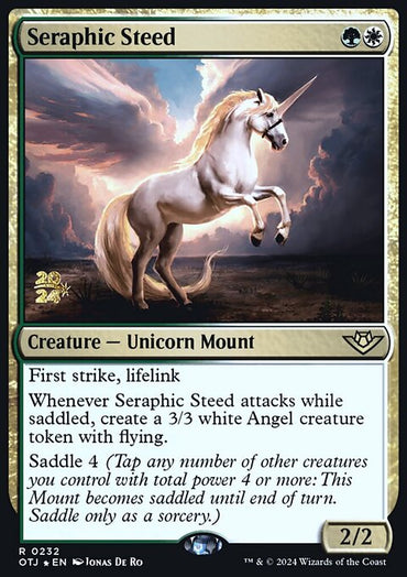 Seraphic Steed [Outlaws of Thunder Junction Prerelease Promos]Set: Outlaws of Thunder Junction Prerelease Promos Type: Creature — Unicorn Mount Rarity: Rare ...