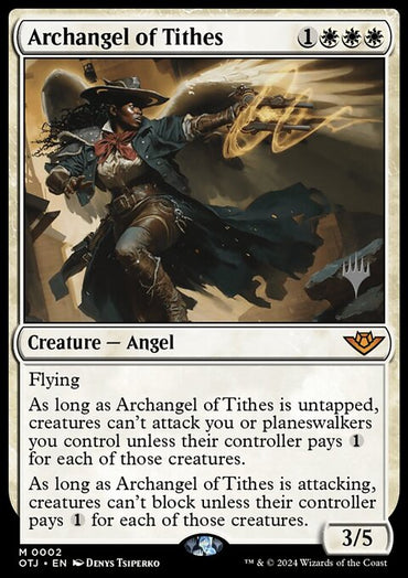 Archangel of Tithes (Promo Pack) [Outlaws of Thunder Junction Promos]Set: Outlaws of Thunder Junction Promos Type: Creature — Angel Rarity: Mythic ...
