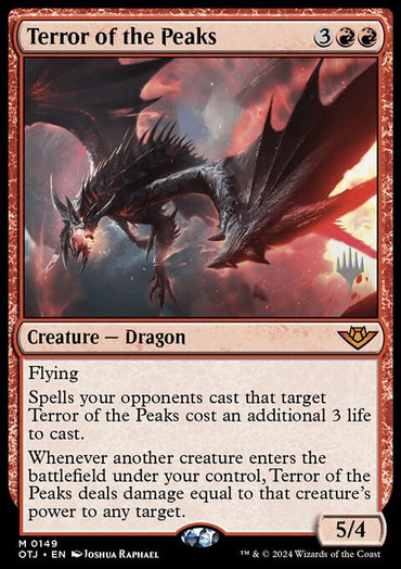 Terror of the Peaks (Promo Pack) [Outlaws of Thunder Junction Promos]Set: Outlaws of Thunder Junction Promos Type: Creature — Dragon Rarity: Mythic ...