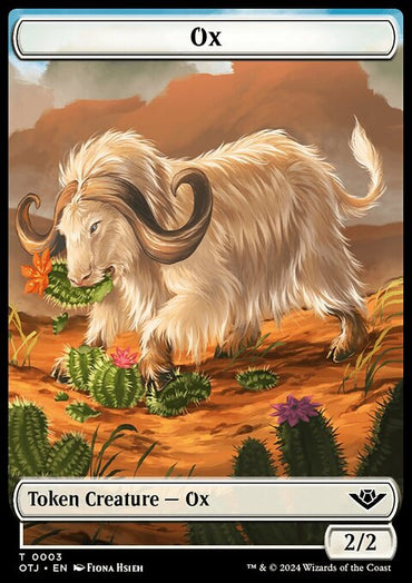Ox // Plot Double-Sided Token [Outlaws of Thunder Junction Tokens]Set: Outlaws of Thunder Junction Tokens Type: Token Creature — Ox Rarity: Common ...