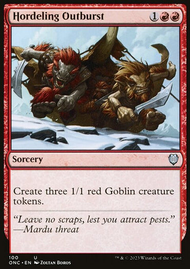 Hordeling Outburst [Phyrexia: All Will Be One Commander]Set: Phyrexia: All Will Be One Commander Type: Sorcery Rarity: Uncommon Cost...