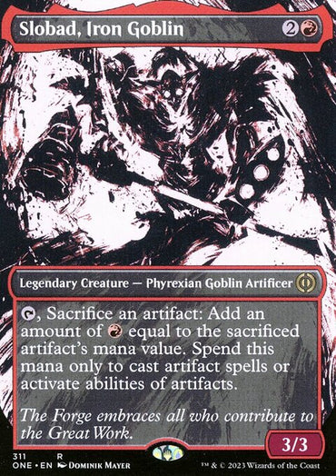Slobad, Iron Goblin [Phyrexia: All Will Be One]Set: Phyrexia: All Will Be One Type: Legendary Creature — Phyrexian Goblin Artificer Rarity: Rare ...